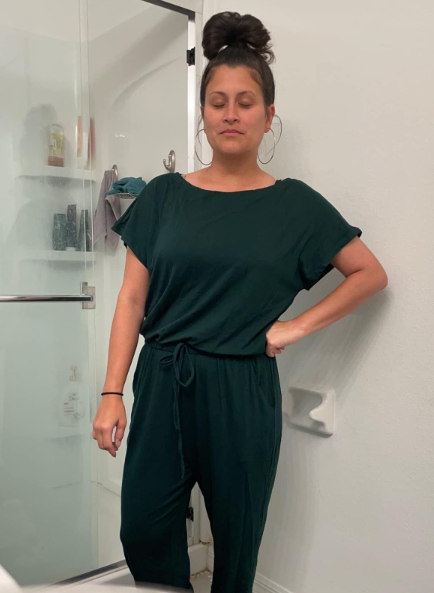 I usually hate dressy clothes, but this romper is the perfect mix of comfy and cute! I’m 4'11", 120 lbs and got a medium—it’s a bit loose like I wanted, but I’ll try a small next. The color is gorgeous (like a forest green), and even though the drawstring is just for show, it still looks super cute. I’m picky with clothes but I actually feel amazing in this. 🥹