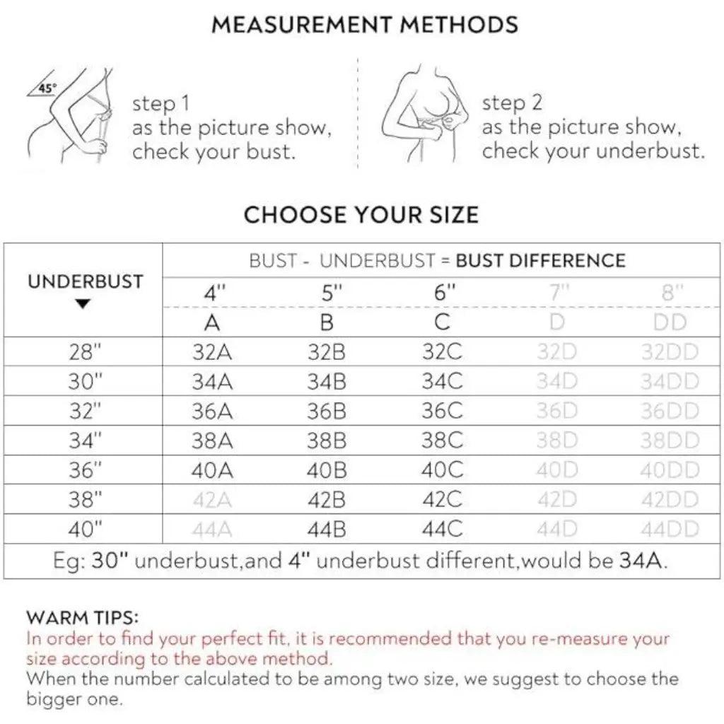 Available in band sizes 32–42 and cup sizes A–F (including DD, E, F). Most customers say it runs true to size with adjustable straps for a custom fit.